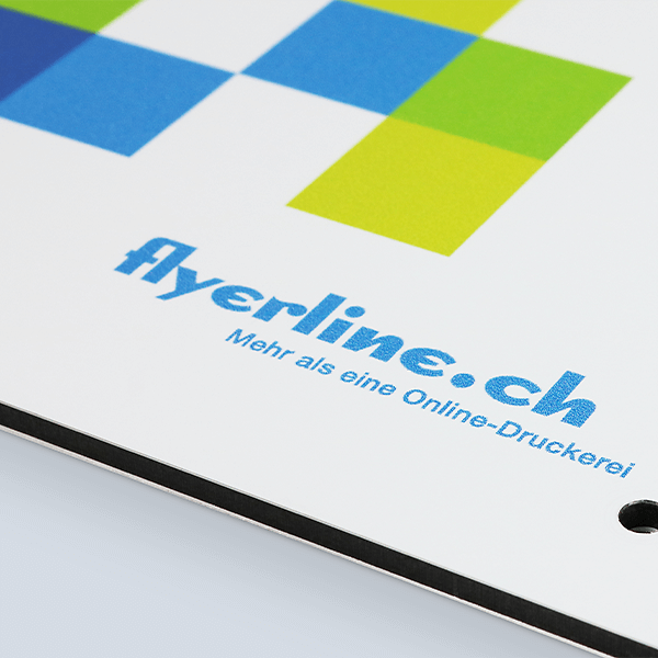 Die Flyerline Schweiz AG druckt im 4-Farben druck CMYK (auch Euroskala genannt). In den Daten enthaltene Sonderfarben und RGB-Farben werden in CMYK umgewandelt. Die Schilder bedrucken wir mit hochwertigen Farben, damit deine Schilder ein exzellentes Druckbild erhalten. Bei einem Druck auf das Material «Acrylglas» wird im 5-Farben-Modus gedruckt. Hierbei ist die fünfte Farbe weiss, mit welcher das Druckbild hinterdruckt wird (vollflächig oder partiell), um eine perfekte Druckqualität zu erzielen.
