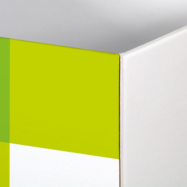 4-sided dump bins are produced using 3-mm-thick corrugated cardboard and they are available in white, coated on one side or in natural brown.