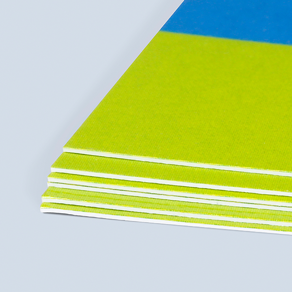 Laminated flyers are printed on 170 g/m2, 250 g/m2 and 350 g/m2 coated FSC®-certified illustration printing paper with a matt finish.